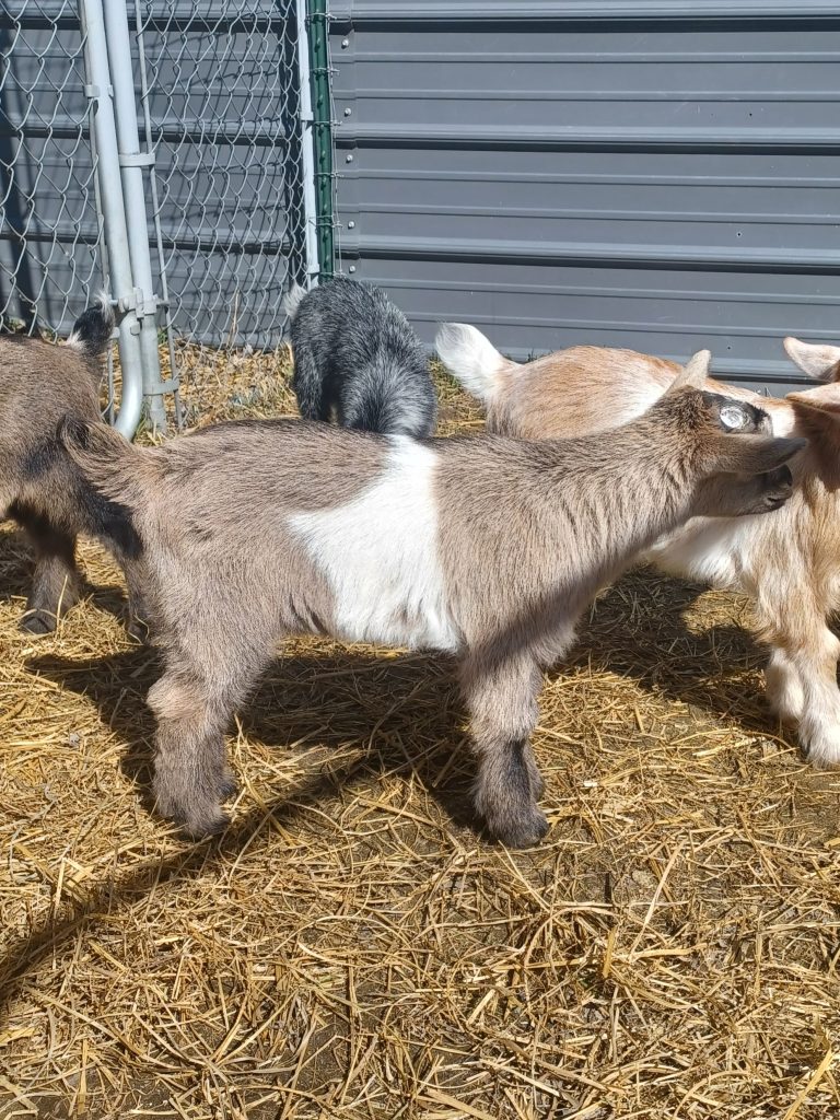 A non-refundable deposit equal to 50% of the sale price will hold the kid until weaning or an agreed upon time shortly after weaning. Please understand that all deposits are non-refundable because you are asking us to take an animal off the market and reject other possible offers. If a goat is past weaning age when we receive a deposit, the goat will need to be paid in full, and picked up or shipped within a reasonable time (usually no more than 2 weeks after receipt of deposit), or boarding charges may apply. A written statement of the estimated pick-up date must be sent by email or FB Messenger when you make the deposit.
